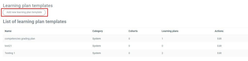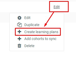 Once the template is created, clicking the Edit link will allow them to create new learning plans only for the students in the cohort created by the admin.