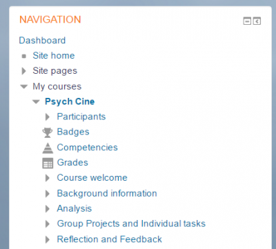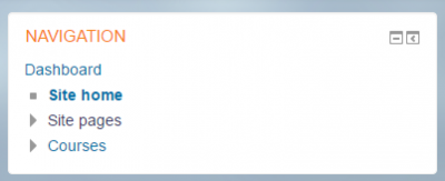 - If enabled, the navigation block will appear on every page of the site. It contains an expanding tree menu which includes Dashboard, Site Pages and Courses. What appears in the navigation block depends on the role of the user, where they are in the LMS site, and any settings that have been applied globally.