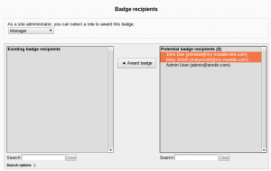 Site administrators choose a role to award a badge |