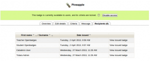 This tab displays a list of users who have already earned the badge