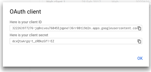 When you have saved the information on this page, Google will give you the client ID and client secret that you need to enter into LMS.