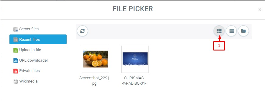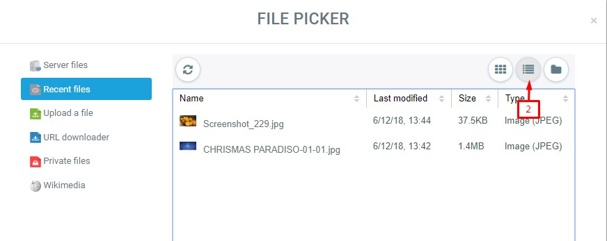Note: The order in which repositories are listed in the file picker is set by an administrator in Settings > Plugins > Repositories > Manage repositories.