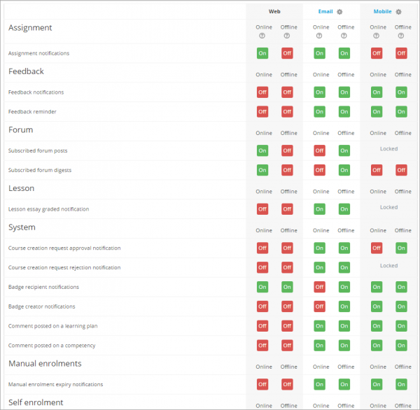 Because users might have many different messaging options, they are ordered into different components – for example, activities, system, enrollments etc.
