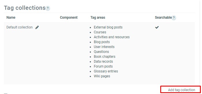 Areas in which tags may be used may be enabled or disabled as required. For example, if you don’t intend to use course tags on your site, the courses tag area can be disabled so that the Tags section doesn’t appear on the edit settings page for each course. If you have turned off Blogs at the system level, then you would usually turn off blog tagging too.