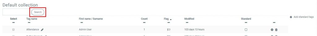 Clicking on the name of a tag collection then displays the list of tags, together with information on their creators, how many times they are used, when they were last modified, which tags have been flagged as inappropriate and which tags are marked as standard.