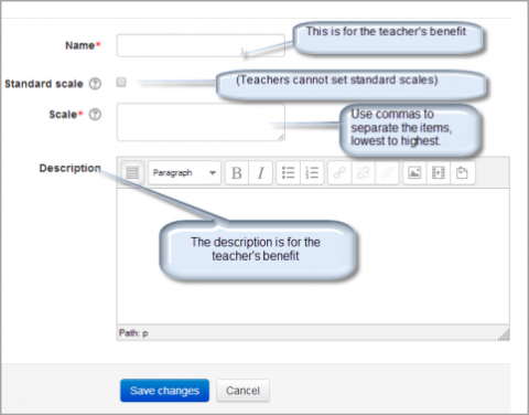 - Write a detailed description in the Description box to remind you (or other instructors) of how the scale is to be used.