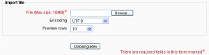 Note 2: To import grades above 100% you need to check the ‘unlimitedgrades’ and ‘gradepointmax’ settings in Site administration>Administration>Grades>General settings.