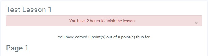 This allows you to set a time limit on the lesson which can now be seconds, minutes, hours, days or weeks. Users will see a countdown counter in a block as they work. (Note that this does not work if the lesson is downloaded for offline use via the mobile app.)