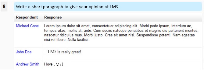 If the questionnaire Respondent Type was set as “fullname”, users with the necessary permissions (usually only instructors or tutors) can view each response individually.