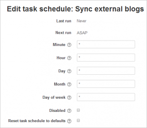 Clicking the edit icon allows the administrator to specify the minute/hour/day/month or day of the week the task is to be run. It is also possible to reset the task to its default setting or disable it completely.