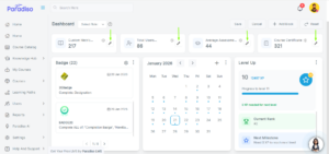 • Stats cards are displayed on the LMS Dashboard