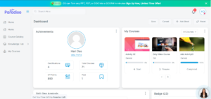The Dashboard is a customizable page for providing users with details of their progress and upcoming deadlines. In the center is the Course overview block which allows users and instructors to easily track required activities and filter courses.