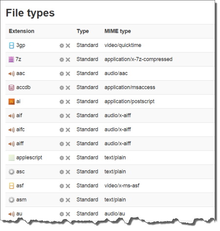 An administrator can add new file types and view, edit and delete existing file types from Settings > Server > File types. This means that, for example, if instructors and users on your site use a lot of files specific to a particular program, such files can now be recognized by LMS, and, when downloaded, they will open in the correct program, rather than presenting themselves as a generic zip file.