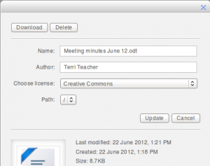 - Clicking on the name of an uploaded file opens up a pop-up dialogue box which allows file details quickly to be altered.