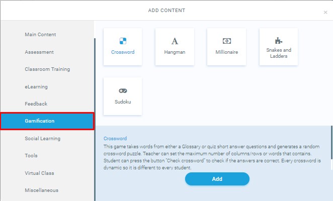 - Now you can select the kind of game (e.g. hangman, crossword, cryptex) and the source.