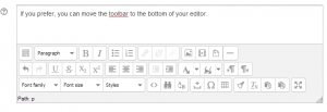 Users may also select the TinyMCE editor (in preference to the default editor Atto) from the user menu top right>Preferences>Editor preferences