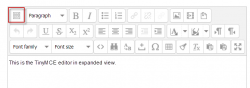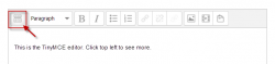 The TinyMCE editor first appears with just one row of buttons. Clicking the icon top left will expand it to three rows.