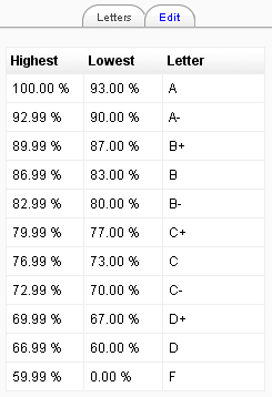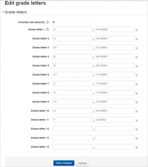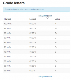 Grade letters are set initially at site level. To use different grade letters in a particular course:
