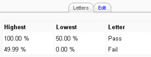 - Change grade letters and/or boundaries as required. (You may wish to use words, for example, Below Pass, Pass, Merit, Distinction, rather than letters.)