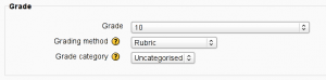 Modules that support advanced grading methods have the grading method selector included in their settings form (for example in the Assignment settings form). The instructor can choose either ‘Simple direct grading’ or one of the installed grading methods plugins. Selecting ‘Simple direct grading’ means that the advanced grading is not used and the standard grade selector is displayed.