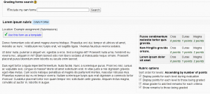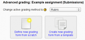 The form definition and the associated assessment data are stashed when the grading method is changed from one type to another. That means it is safe to change the current active grading method from ‘Rubric’ to ‘Simple direct grading’ and back to ‘Rubric’. The rubric definition is kept in the database, although it may not be available while the current grading method is set to some other method.