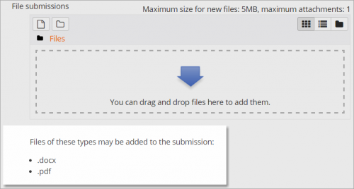 If the file types have been restricted, then when users attempt to submit the assignment, they will see a message telling them which files are accepted: