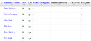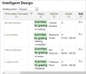 If marking workflow (see above) is set to Yes, it is possible to enable marking allocation. This means that instructors can be selected to grade or review the submitted work of specific users. Colleagues can monitor progress through the displayed marking workflow states:
