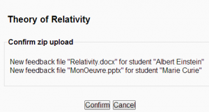 - You will be presented with a confirmation screen displaying your feedback files. (If you zip files from a Mac, make sure to remove the folder _MACOSX)