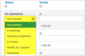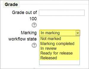 One advantage of using marking workflow is that the grades can be hidden from users until they are set to ‘Released’. The phases are: