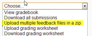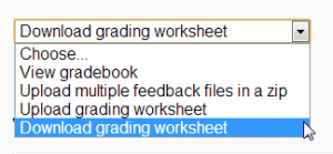 - Download the users’ assignments using the “Download all submissions” link from the same dropdown menu;