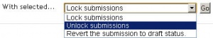 - If this is set to ‘No’ users can make changes to their submission at any time. (If you want to stop them changing work once you are ready to grade, click ‘View/Grade all submissions’; locate the user and From the Edit column, click the action icon and select ‘Prevent submission changes.’