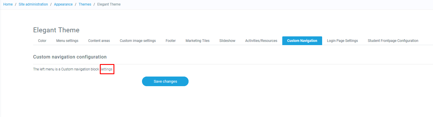 After clicking on the Settings link you will be redirected to Custom Navigation settings screen.