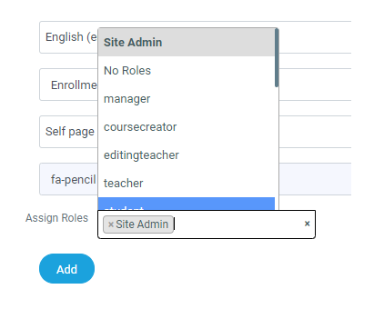 Select the icon for the new menu to identify your menu and select the users that will be able to see the menu option. In this example, only site admins will be able to see this menu option. Then click on “Add” to finish.