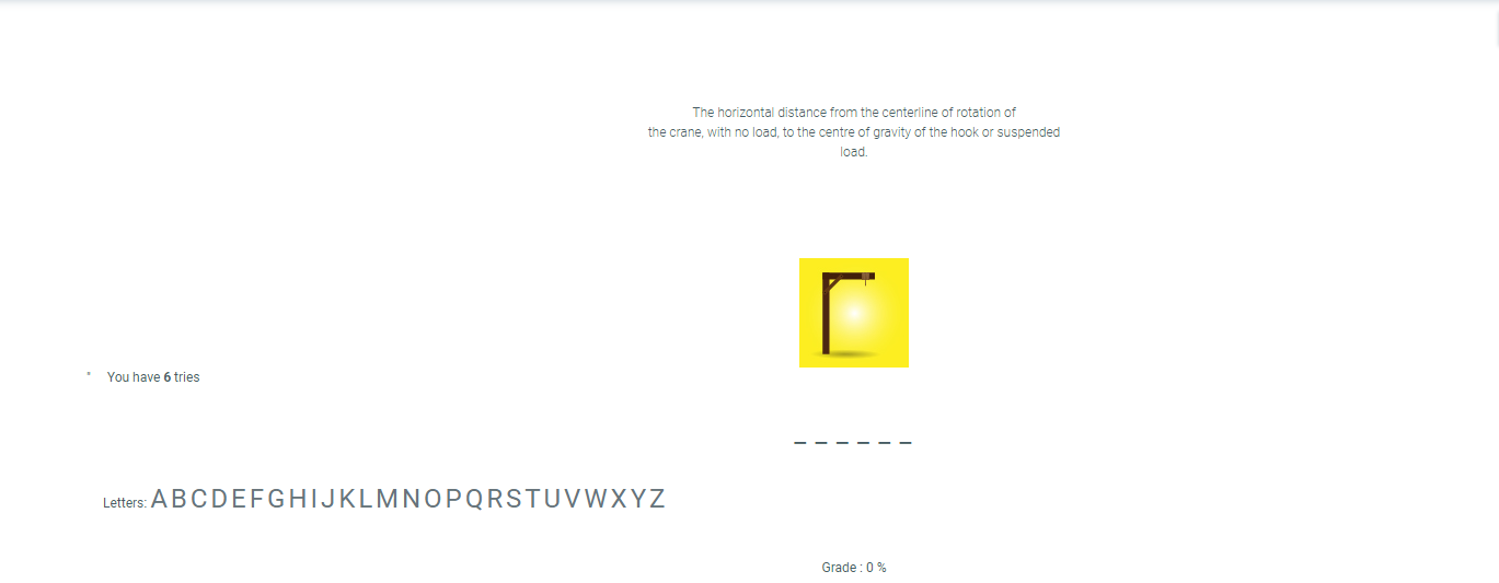 This game takes words from either a Glossary or quiz short answer questions and generates a hangman puzzle. The instructor can set the number of words that each game contains, if it shows the first or last letter, or if it shows the question or the answer at the end.