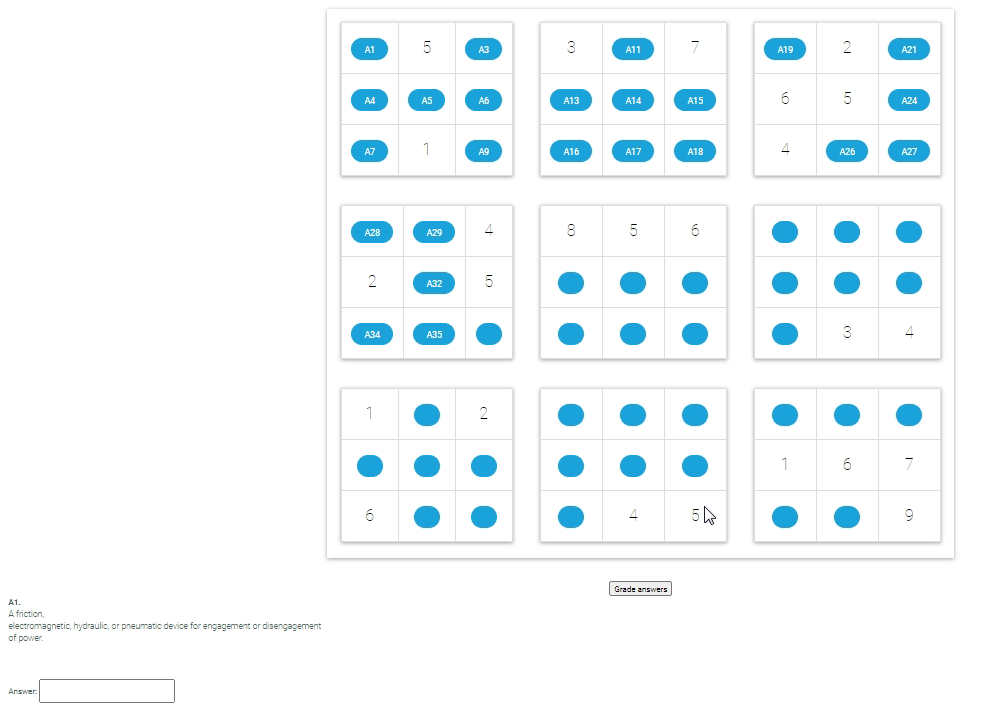 This game shows a sudoku puzzle to the users with not enough numbers to allow it to be solved. For each question, the user correctly answers an additional number is slotted into the puzzle to make it easier to solve.