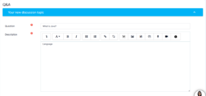 1. A Q&A is discussion forum. Similar to the forum activity, but focuses on straightforward question-and-answer discussions. Additionally, users like the post being created by other users. Users who have started a discussion can mark an answer as helpful.