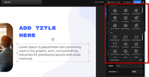 For the selected element, you can apply animations for both entry and exit. Simply choose the desired animation type under the Entrance category to define how the element appears, and under the Exit category to define how it disappears.