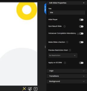 Once the course is generated, At the bottom right corner of the slide, you’ll find the “Edit Slide Property” option. Click on it, and the slide edit properties will appear in the right-hand panel.