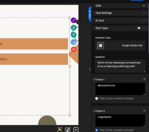 - Require – Ensures that the quiz must be completed before moving to the next slide.