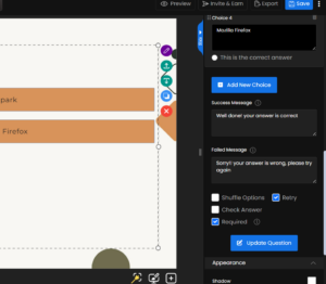 - Retry – Allows learners to reattempt the question if they answer incorrectly.