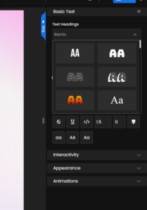 Below, you’ll see the Text Headings option. By clicking on the dropdown under Text Heading, you can scroll through various styles. This controls the text style and overall appearance of your text.