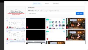 Another option My Video, displays the videos you have already created. To insert one, simply click the plus sign next to the desired video. If you have multiple videos, you can search by name, or create a new video if needed.