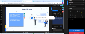 Once the video appears on the slide, the right drawer will display options to add interactivity. By clicking the drop-down menu, you can choose to add either a Hotspot or a Hot Quiz.