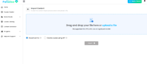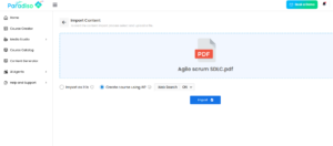 Click on the Import Content ( you can upload Paradiso SCORM file, ppt , pdf or doc file)