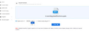 - You can import the ppt as it is , so that the course will be created with the slides from the ppt.