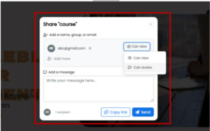 Once you click on the Share button, a new tab will open. Here, you can enter the email ID of the person you wish to share the course with. You also have the option to add more recipients.