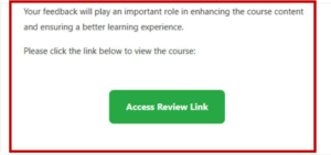The recipient will receive an email which will include a link granting access to either Review or View, depending on the permissions granted. To access the course, the recipient simply needs to click on the link provided.