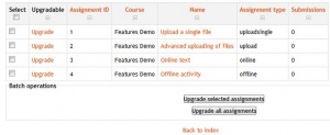 3. Select the assignment(s) you wish to upgrade and click the Upgrade selected assignments button in the Batch operations box at the bottom of the screen. Or click the Upgrade all assignments button in the Batch operations box.