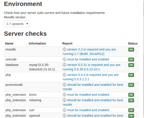 An administrator can check that their site meets all system requirements for the current and future versions of LMS in Administration > Site administration > Server > Environment. It is important to check system requirements prior to upgrading.