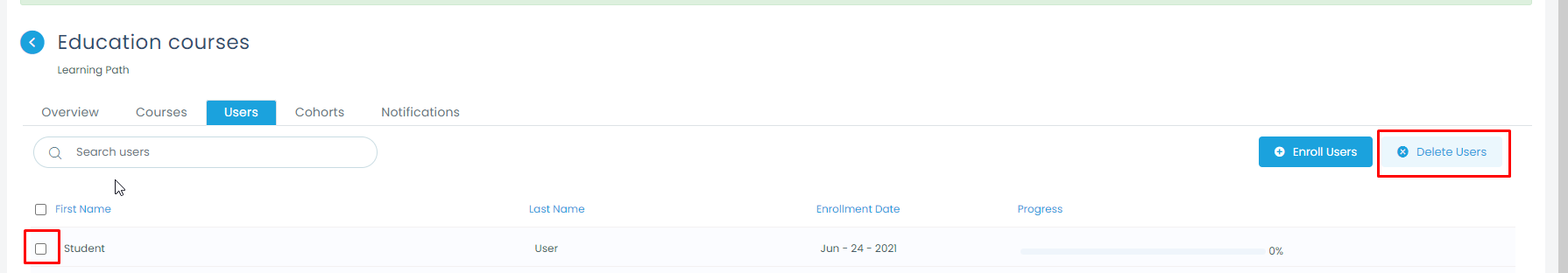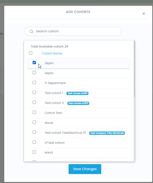 • Inside a Learning path, Click on the “cohorts” tab